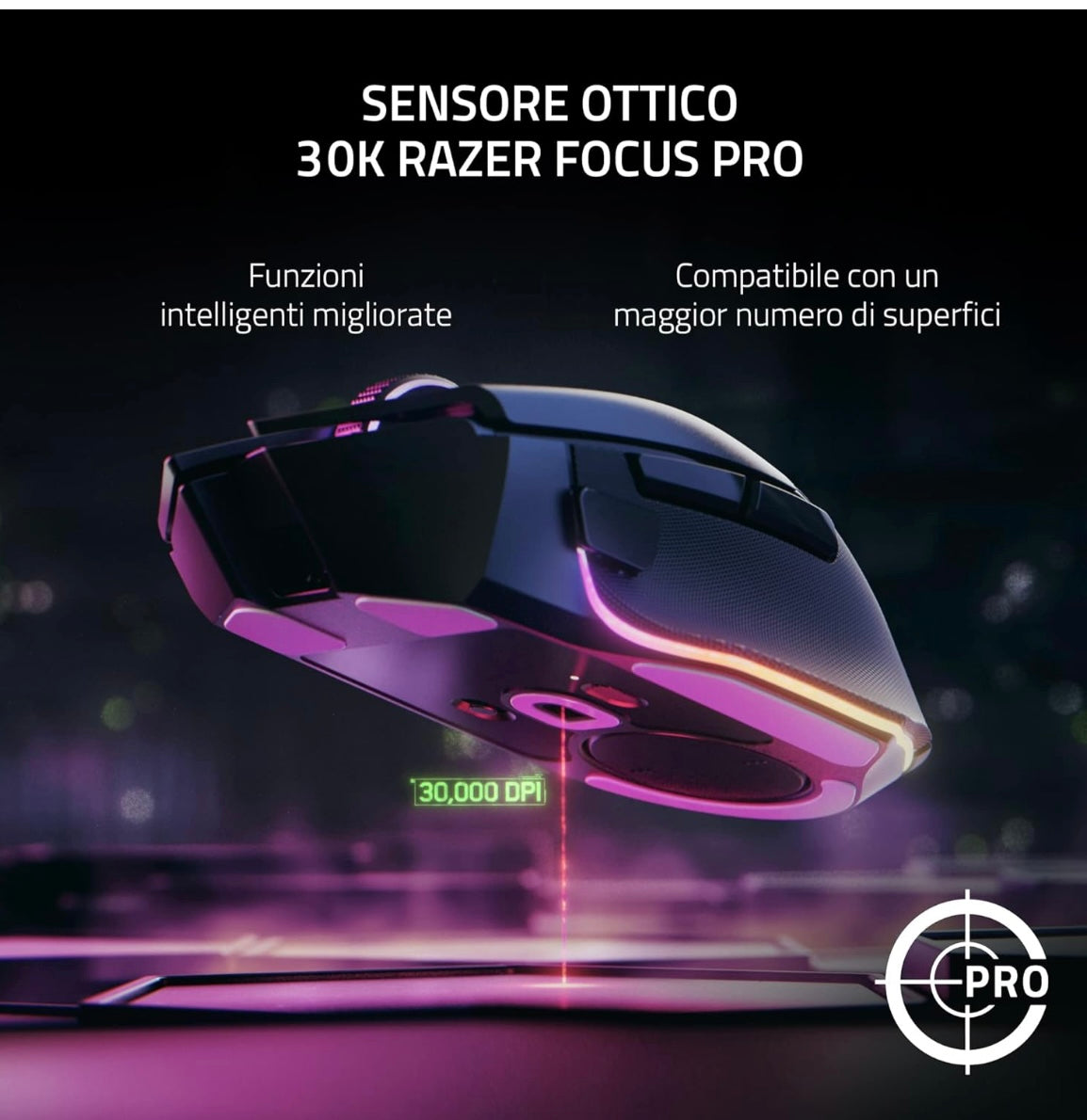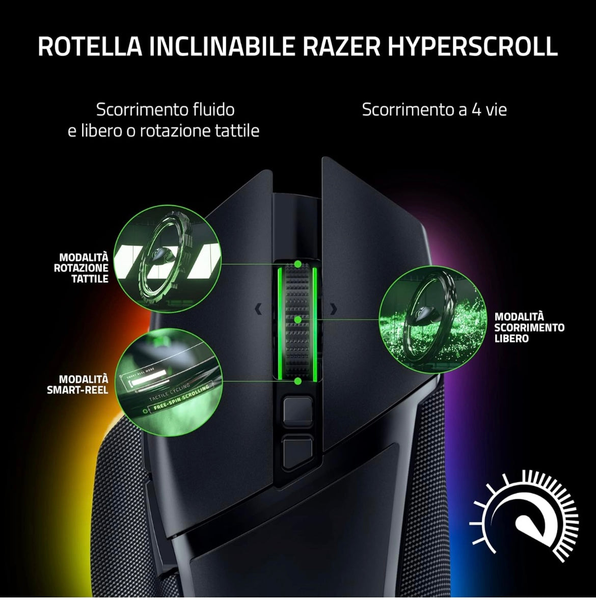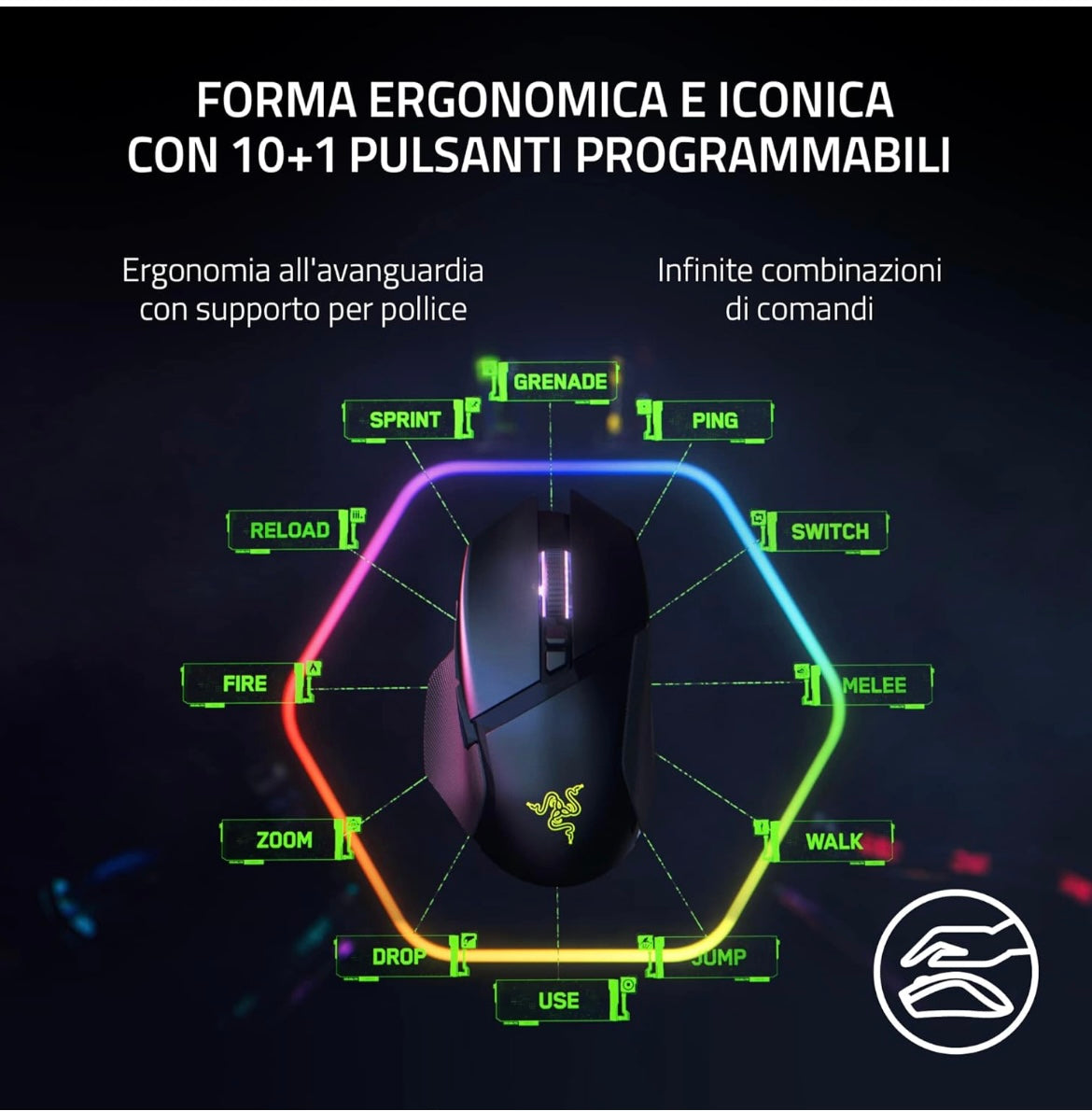 Razer Basilisk V3 Pro - Mouse da Gioco Wireless Personalizzabile con Rotellina Inclinabile Razer Hyperscroll (Sensore Ottico Focus Pro 30K, Chroma RGB, Pulsanti Programmabili 10+1) Nero