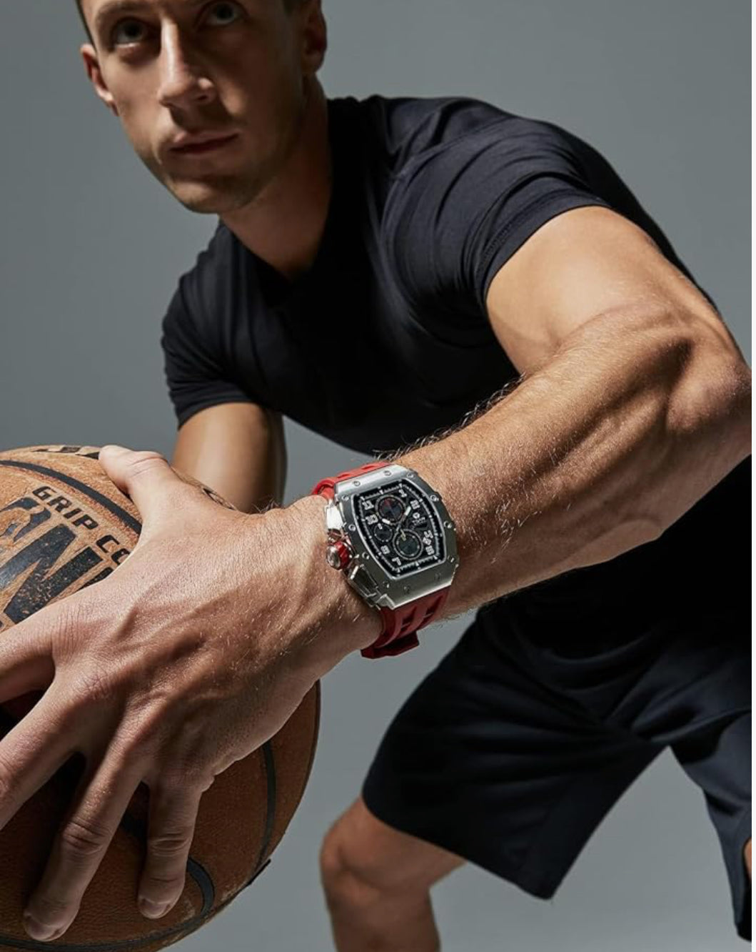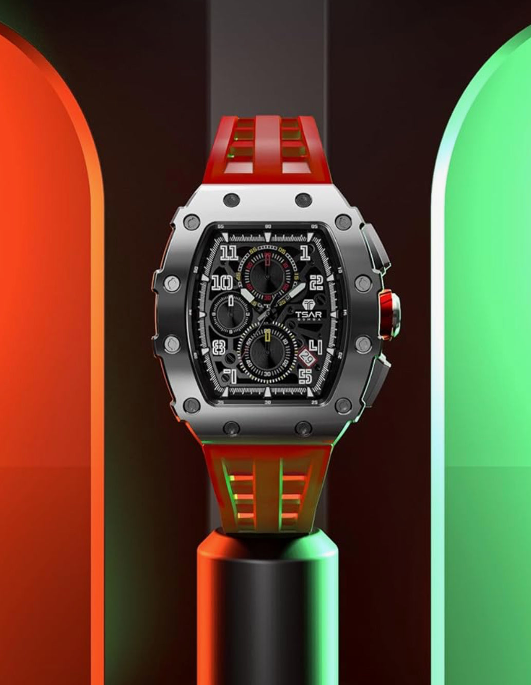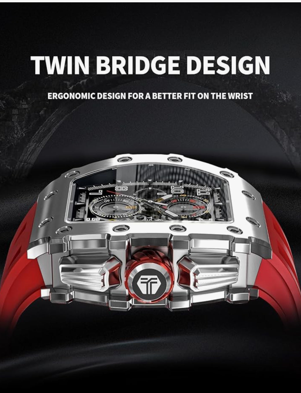 Orologio Uomo Tonneau Design Impermeabile 50M con Cinturino in 316 Acciaio Lunetta Regalo Uomo Militare Cronografo Orologio da Design Elegante